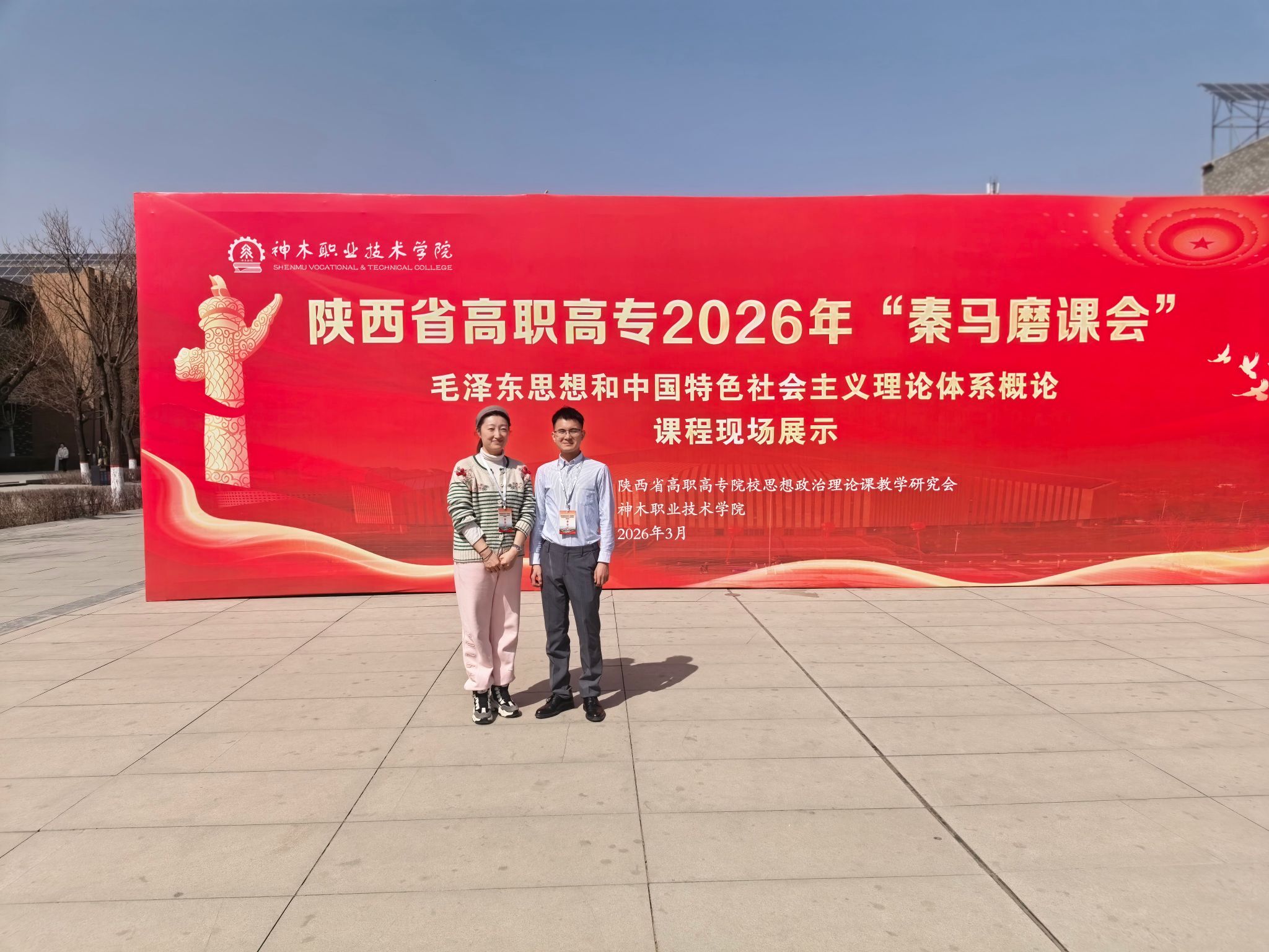 3 月 20 日,陕西省高职高专 2026 年 “秦马磨课会”《毛泽东思想和中国特色社会主义理论体系概论》课程现场教学展示活动在神木职业技术学院顺利落幕。本次活动由陕西省委教育工委指导,陕西省高职高专院校思想政治理论课教学研究会主办,神木职业技术学院承办,是全省高职高专思政课教学领域的一次重要交流赛事,吸引了全省27所高职高专院校的百余名思政课教师参与角逐。经网评严格选拔,20位教师晋级现场展示环节,并分骨干教师组、青年教师组展开同台比拼。我校马克思主义学院教师刘贤保凭借优异表现荣获青年教师组二等奖,《毛泽东思想和中国特色社会主义理论体系概论》教研室主任方方带队参赛。