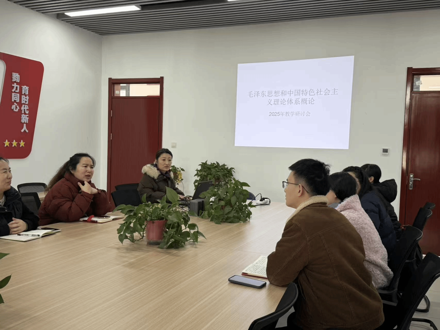 为深入贯彻立德树人根本任务,持续深化新时代思政课教学改革创新,切实提升思政课程教学质量与育人实效,2025 年 11 月 28 日,《概论》课教研室在 9 号楼 107 室举办了本学期教学研讨活动。活动由教研室主任方方主持。
