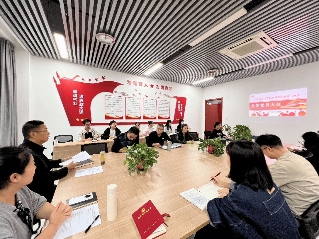 会议第三环节组织委员郜馨通报了第三季度支部党建工作成果:完成三会一课制度流程优化,实现组织生活参与率100%全覆盖;开展理论专题学习3次,特别在抗战精神专题学习中,党员教师结合专业优势推动理论学习成果向教学实践的转化;重点介绍了党支部成功获评省级样板党支部的创建过程。